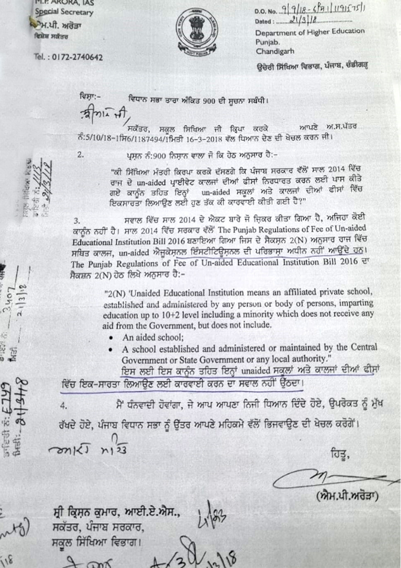 The Punjab regulation of fee of unaided educational institutions bill 2016 |
